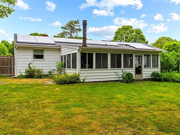 Close to downtown for shopping or dining you will find this 3 bedroom 1 ½ bath ranch with gleaming hardwood floors. The living room features a fireplace gas stove with den off living room that would be great for an office or playroom. Kitchen/dining is set up for great family gatherings. You will find a partially finished basement and also extra storage space. The 3 season room with a wood burning stove is a great place for summer entertaining. There are leased solar panels that can be transferable to buyer. One car garage has front and back door with easy access to backyard. Quiet backyard yard with beautiful mature plantings abuts Hyannis East Elementary school.