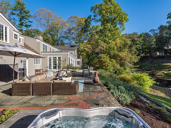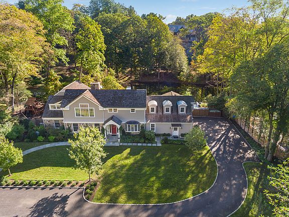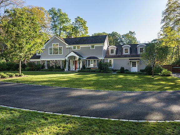Completely renovated 6 bedroom, 6.5 bath Colonial-style home perched high above Frye Lake on 2.1 wooded acres. The gated and completely fenced in property is an entertaining oasis complete with lakeside dock, stone terraces, Jacuzzi, outdoor shower, playground, level play area and bucolic privacy in every direction. Gracious, light-filled living spaces with 3 fireplaces and hardwood floors throughout first level. Chefs kitchen opens to large breakfast and family rooms with colossal skylight and oversized windows showcasing jaw-dropping views of Frye Lake. Home office, playroom and handsome red-paneled library complete the first floor. Master suites on both first and second floors plus 4 additional bedrooms on the second floor each with ensuite bath.Upstairs master bedroom boasts new his and hers closets, a show-stopping modern master bath with vanity mirror TV, egg tub and separate steam shower, plus a large balcony providing endless Frye Lake views. Dreamy new mudroom and vast amounts of custom interior and exterior storage systems. Smart home to control lighting, music, TV and climate. Detached and attached heated garaging for 4 cars along with brand new studio apartment. 1,341 unfinished basement and 1,000 garage and studio apartment not included in SF. Generator, propane tank, natural gas, new HVAC, new septic and well-water filtration system. Bring your fishing poles and ice skates and move right into this picture-perfect, meticulously renovated property in mid-country Greenwich. Just minutes to country clubs, schools, transportation and downtown shopping.