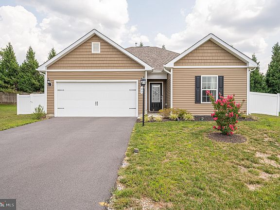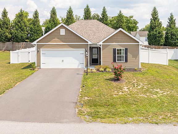 Why wait for a new home when you can move into this beautiful, well-maintained 3-bedroom, 2-bath ranch-style home today? This gem is nestled just outside the Martinsburg city limits in the desirable McGinnis Point community. Step inside to find upgraded flooring welcoming you in the foyer, with two spare bedrooms and a full bath conveniently located to the right. The home features a convenient laundry room and easy access to the garage. The heart of the home is a spacious open floor plan that includes a bright living room, dining area, and an upgraded kitchen with stainless steel appliances, granite countertops, a breakfast bar, recessed lighting, and a large pantry. The primary bedroom, located off the living room, boasts a private full bathroom with an oversized shower and a walk-in closet. Enjoy outdoor living with access from the dining area to a generously sized concrete patio and a fenced backyard that backs to trees, offering privacy and tranquility. This home won’t last long—schedule your showing today!