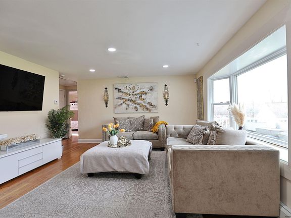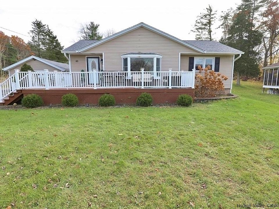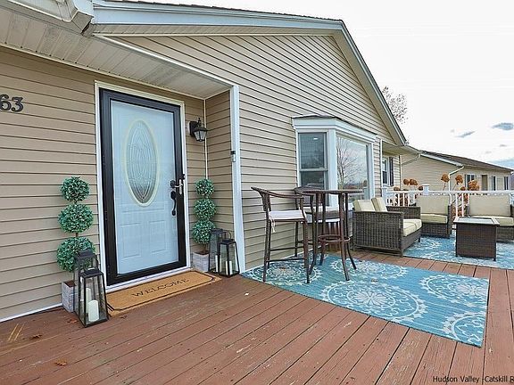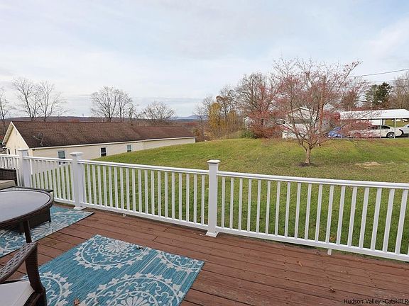 Enjoy easy living on one level in this well maintained three bedroom, one bath home. Charming ranch boasts a spacious and inviting living room, complete with hardwood floors and a large picture window. This room offers ample space for entertaining and relaxation allowing for plenty of natural light to flood in. The eat in kitchen is stylish and fully equipped with sleek stainless steel appliances, quartz countertops, tile backsplash and plenty of cabinet space. Off the kitchen is a spacious room that can either be used as a dining/family room with high ceilings and walls of windows. French doors lead out the open deck overlooking the manicured yard that has the perfect setup for family gatherings/ summer BBQ's. Each of the three bedrooms offer a comfortable living space for relaxation with closet space. The bathroom has been recently updated with a newer toilet, modern vanity and led mirror. Lower level is full and unfinished providing additional storage with a washer/dryer. Property is nicely landscaped with beautiful mountain views making this the perfect setting for outdoor gatherings. There is a detached one car garage that allows for additional storage for all your toys. Not much to do here besides move in! Conveniently located minutes to shopping, restaurants, NYS Thruway, Saugerties, Woodstock, Rhine cliff Bridge and so much more! Recent updates include: Kitchen & Bathroom (2021) new roof, gutters and siding all in (2022) Deck (2020) Privacy fence ( 2022)