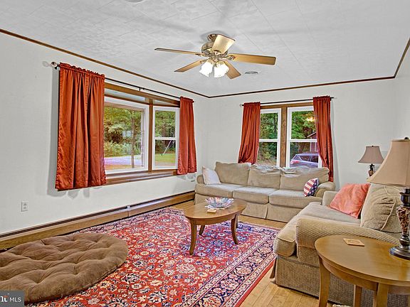 This ranch style 3 bedroom home sits on 3 acres and offers peaceful country living! Offers 2 heating options of Oil heat or an outdoor wood stove, and central A/C. Large island and spacious kitchen is perfect for entertaining, and connected to a large deck overlooking your back yard. Primary bedroom features a connected 1/2 bath. Basement with ample storage space & garage under the house, a separate barn/garage in the backyard, and a shed/playhouse.