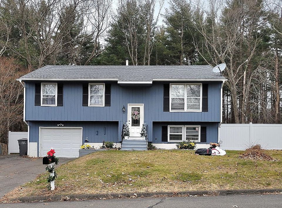 Great for First Time Home Buyers. 2 Bedrooms, 2 full baths. Beautiful Level yard that backs to the woods. Huge deck, Kitchen with breakfast bar and separate dining. Bi-level designed for casual comfort. New Pergo style flooring for low maintenance-easy care "mop and go" Main level living, dining and kitchen. Super clean lower level. Step outside to your private retreat abutting Mulberry Reservoir open wooded area. So convenient to shopping and restaurants, Whitemore Glen State Park and Hop Brook Lake and Golf Course. House was converted from 3 bedrooms to a 2 bedrooms by knocking down a wall. It can easily be converted back to 3 beds, but if you choose not to, all you need is the transition strip to finish the floor (pictured) Lower level can be used as the third/four bedroom or a family room / recreation room. House size: 1,449 sq ft Lot size: 8276 Heating: Forced Air Year built: 1986 Property type: Single family Style: Ranch