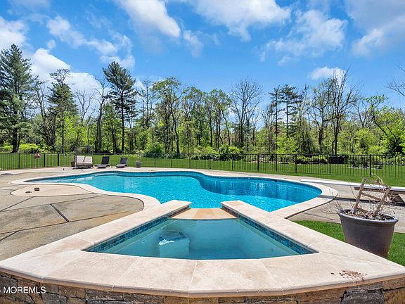 Situated in one of Colts Neck's most desirable neighborhoods, this impressive 5 bedroom, 4.5-bath residence combines modern luxury with timeless elegance. Set on over an acre, the home has been beautifully renovated inside and out, showcasing an open layout and sophisticated finishes throughout. There is a complete in-law/ai pair suite with its own kitchenette, private entrance and laundry. The resort-style backyard is designed for entertaining, featuring a sparkling in-ground pool, expansive patio, and manicured landscaping. The attached pool house is perfect for overnight guests with its own bedroom and full bath. A serene primary suite, generously sized secondary bedrooms, and a 3-car garage complete this remarkable property.