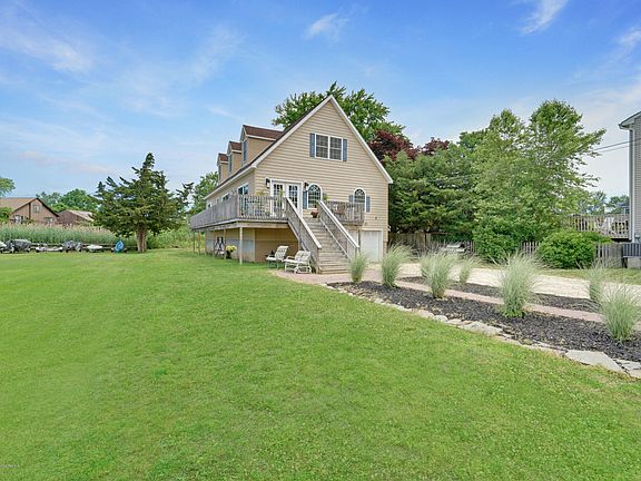 Your search ends here! This renovated raised 3 bed 3.5 bath home will not disappoint. Relax on your over sized deck with water views ! Open layout concept. Kitchen with center island, custom cabinets, granite counter-tops. back-splash, and stainless steal appliances. Enjoy the two sided fireplace in your dining area or cozy family room. Sliding doors off kitchen opening to deck. Bonus room for office or additional bedroom. Over sized Full Basement ! Close to beaches, restaurants, parkway, shopping centers, and much more!