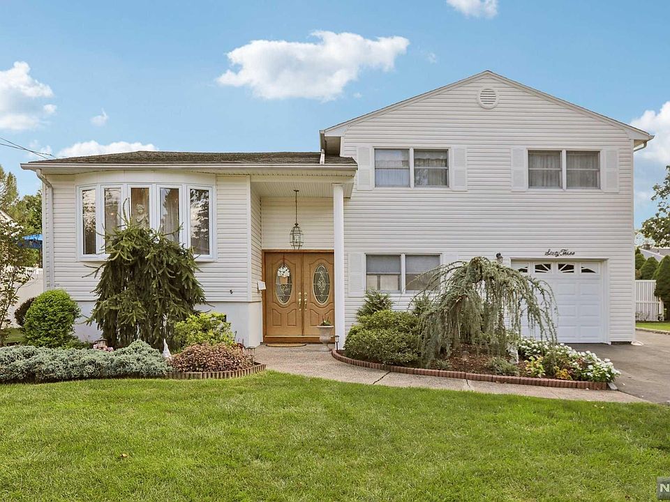 Welcome to your new home in the sought-after White Beeches neighborhood of Dumont! This meticulously maintained split-level residence is ready for you to move right in. Step into the welcoming foyer and be greeted by an expansive open living and dining area, immersed in natural light from a large bay window. This flowing directly into the updated eat-in-kitchen. The main level also features a generously sized bedroom. A few steps up to the top level, you'll find three additional bedrooms and a full bathroom. The ground floor includes a family room, a full bath, and convenient access to the garage and backyard. The finished basement adds even more versatility, offering an additional living area, an office, a laundry room, and plenty of storage. This home is ideally situated close to transportation, schools, parks.