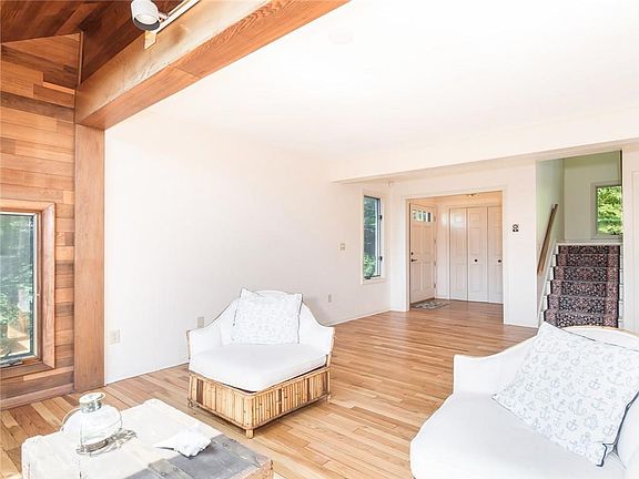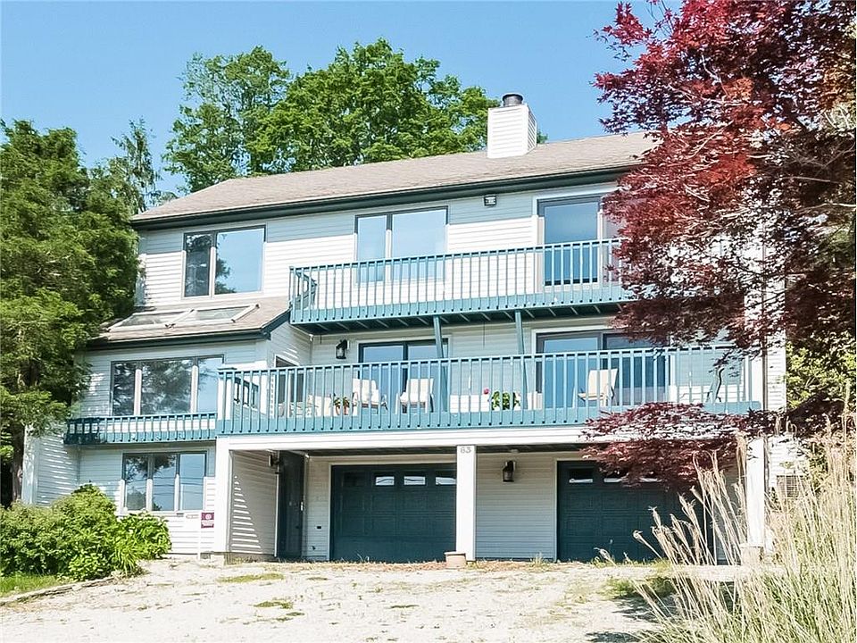 This very spacious, Contemporary home features exceptional views of the Mystic River, Mason's Island, and Noank Harbor. Sit and relax on the upper or lower east-facing balcony and watch the boats go by! Enter the front door to the main level, which features a large living room space with lots of light. This flows into a lovely David Hecht kitchen with stainless appliances, large island, fireplace, and sliding glass door to the main balcony. Rounding out the main floor is a full bath, large den / multi-purpose room with access to another sliding glass door and deck, utility room and rear access door. Walk upstairs to the 4 bedrooms (3 of which feature stunning water views), 2 full bathrooms, and upper level laundry area. The true Master bedroom has access to the upper balcony, a walk-in closet, and private full bath. The basement is fully finished, and is a great place to store your beach and boating gear after a day enjoying your favorite coastal activities. Off of this room is another half bath/2nd laundry room and direct access to the 2-car garage. This home really needs to be seen in person to appreciate the location, privacy, views and lifestyle that can be enjoyed here. Come put your special stamp on this coastal Mystic retreat! Close to beaches, marinas, farmers markets, downtown Mystic, Noank Village, Groton Long Point, Amtrak and I-95. Great primary or second home! Seller is highly motivated; copy of flood elevation certificate available upon request.