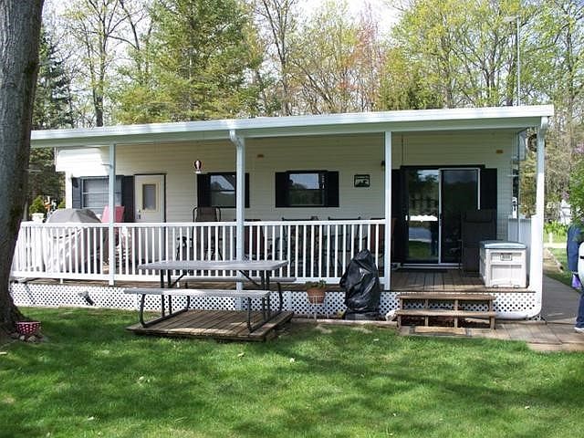 Beautiful 3 Season Resort Community living, Beach, Playground, picnic area, Shuffleboard, Bath houses, Laundry Facilities close by. Enjoy the 5 Lakes in the Chain-of-Lakes area connected by canals. Lakefront Living at an Affordable Price. Perfect Location for day trips all over the State. Schedule a Showing today and enjoy your Waterfront Vacations.