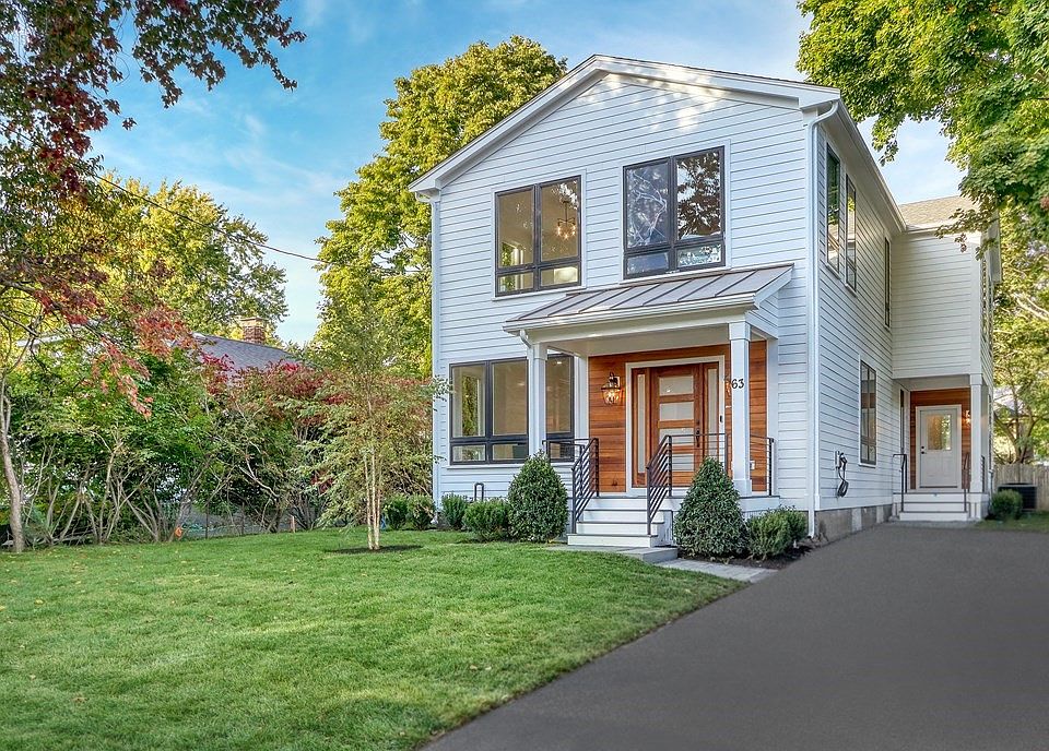 Nothing to do but move right in! Welcome to 63 Charlemont - this stunning new construction home offers 4 en-suite bedrooms, 2 half baths, high ceilings and an open bright floor plan. The first floor features a gorgeous chef's kitchen open to a bright and sunny dining and family room area. Additionally, there is a hidden work station, large mudroom and 1/2 bath. The 2nd floor consists of 3 bedrooms, each with their own designer worthy bathroom and a laundry room. The basement feels more like another family space - with high ceilings, extra large casement windows with transoms, a mini bar, and half bathroom - in addition to a full bedroom and bathroom. Outside features a patio with gas hookup for a grill, yard and an electrical charging station.