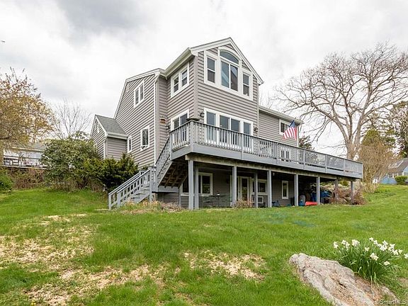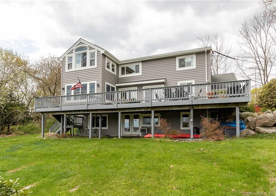Overlooking the Mystic River this property was designed to enjoy daily serene views from every room while bringing inside natural light. Virtual tour available. The yard offers land for gardening or play area nestled at the end of a private road. The upper deck offers plenty of space to enjoy relaxation, summer meals and grilling. Enter into the main level Dining area with room for a large table. The Kitchen is situated to capture light and water views with a perfect Sun room or breakfast nook. The granite Island has a sink, the surrounding counters and cabinets offer plenty of space for preparing meals. The main Living room has a cathedral ceiling and a wall opening into the dining room to bring in natural light. To complete the main level there is an office or multipurpose room that enters into the garage, a first floor bedroom and a full bath. Heading up to the second level is a fabulous Master Suite complete with a Spa bath that includes a large tub and double sinks. Attached to the master is a bright Sun room to soak in the light and water views. The third bedroom is also located on the upper level and has another full bath. The lower level extends the living space with a family room and a walk out door to the patio and includes a fourth bedroom and full bath. The laundry room, utility room and storage room finish this level. Updates to note are new windows, new siding, new furnace (2016, two built in A/C units, roof approximately 2006. Located near downtown Mystic.
