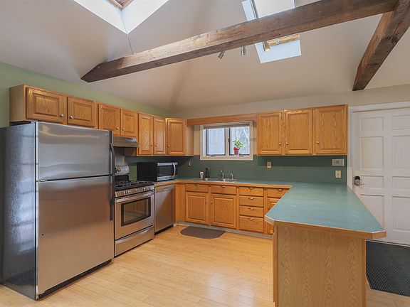 You will love this single level house's easy living style, open floor plan with its cathedral ceiling, providing a seamless transition between cooking, eating, and relaxing, and bringing friends and family closer together. Its large bright sun filled central “Great Room” opens to the kitchen, dining room, living room, bathrooms, and to the bedrooms, and allows for the most space possible. After a long day on the slopes or playing outside in the snow, relax in your very own steam room. Step out onto the newly painted large deck and embrace the wildlife, and listen to a babbling brook. If you are looking for a private property to enjoy the great outdoors, this is the home for you! In Newbury, a low tax community, a popular family destination for outdoor adventure and leisure, a supreme network of off-road activities, cross country, mountain biking, and hiking, with trails connecting the Sunapee-Ragged-Kearsarge-Greenway, nature preserves, alpine skiing and snowboarding at the Vail Mt. Sunapee Resort, snowmobiling, ice fishing, or skating from Newbury Harbor and beach, at the southern end of Lake Sunapee. Only located 20 minutes to downtown New London, 1 hour to Boston Manchester Airport, and 2 hours to downtown Boston. A fabulous multi-season location! Don’t miss the opportunity to own this turn key home.