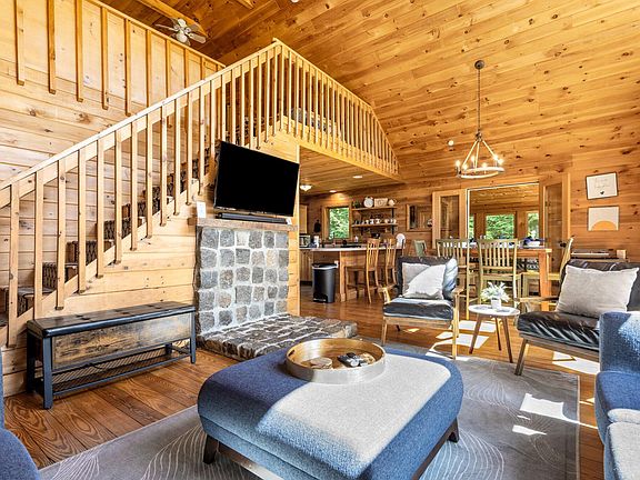 This charming chalet embodies classic simplicity and offers stunning mountain views. Nestled in a private setting on over 5 acres, it features a tranquil babbling brook. With a proven rental history generating over $120K per year in gross income, this home is a solid investment. Professionally managed by the ''5 Star Co Host,'' it's fully turn-key and ready for its next owner.