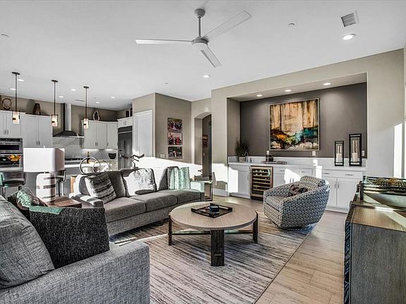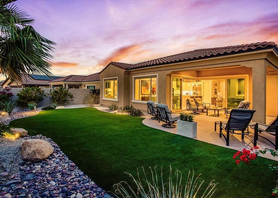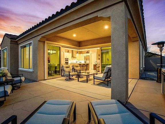 Welcome to Del Webb at Rancho Mirage & embrace upscale 55+ active adult living. An elevated aesthetic will be yours in this popular SANCTUARY model home. Property comes designer furnished with high end Bernhardt furniture collection. Prime interior location, near clubhouse. Desirable Southern exposure with mountain views. Enter glass paneled front door via upgraded tiled entry. Soaring ceilings & walls of glass let in natural light. Home designed for entertaining & relaxation--centered around dramatic open corner stacking slider doors that beckon to the inviting outdoors. Great room enhanced by wall-to-wall built-in wet bar w/wine fridge & expanded cabinetry. Gourmet kitchen boasts waterfall island, upgraded cabinets, premium KitchenAid appliances, quartz counters & backsplash, walk-in pantry. Primary suite with spa-like bath & walk-in closet. Backyard designed to capture your senses for enjoyment of our desert environment. Enjoy spacious covered patio enhanced by flagstone-finish hardscape & lush-feeling faux turf--PLUS custom BBQ island. Extensive upgrades & attention to detail including porcelain tile flooring; upgraded window & door casings (including sills on the windows); tall baseboards; laundry + added storage; custom window coverings; epoxy finished garage floor + storage cabinets--truly move-in ready! Guard-gated community offers world-class amenities to enjoy--clubhouse, resort-style pools, spa, fitness center, pickleball, tennis & more! Stop searching & START living!