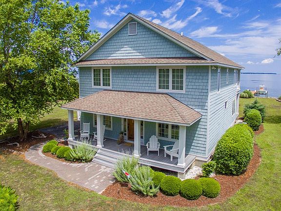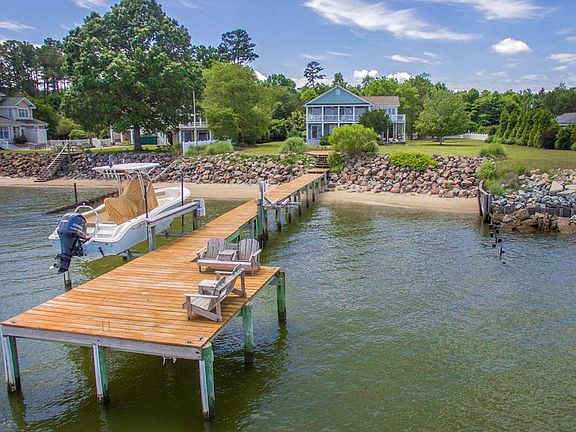 Where the Rappahannock River meets the Chesapeake Bay, this waterfront 2 story blue Coastal home takes full advantage of its HUGE and IMPRESSIVE water views. With 4 porches you can watch the osprey, eagles, heron and boats year round. Just steps to the sandy beach and a private pier with boat and jet ski lifts allows easy access to play in and on the water. Along with its expansive porches and striking waterfront views of the Rappahannock River and Chesapeake Bay "Mermaid Cottage" has a bedroom, a full bath, a laundry room, utility room and a large living room with a bar/kitchenette all on the first level while the second level contains 2 bedrooms, 1.5 bathrooms, a full kitchen, dining area and living area. Many upgrades such as granite countertops, Andersen windows and doors, hardwood floors and many more were made in the 2010 home remodel. Outside there is a fire pit to make smores and stargaze and a storage shed for beach toys and lawn equipment. "Mermaid cottage" is just minutes to local marinas, shopping and great dining! Don't miss your chance to watch where the Bay and River meet.