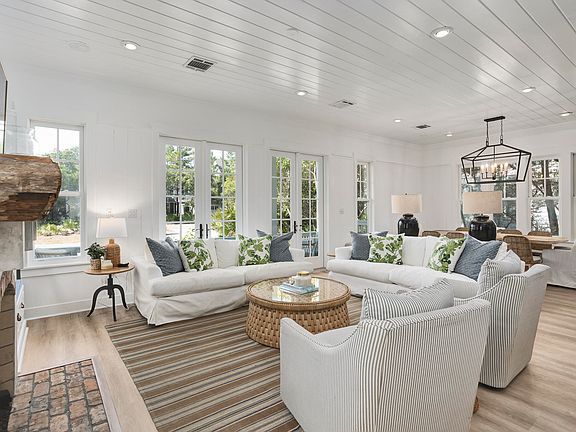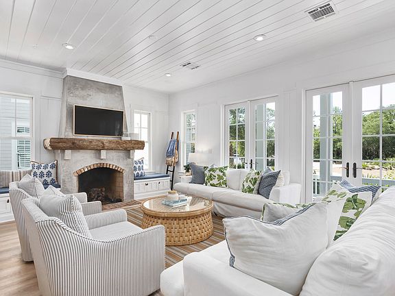 Introducing 63 Creek Bridge Way, a magnificent beach home located in the coveted Watersound Beach. Nestled within a quiet cul-de-sac, this remarkable property offers a luxurious and idyllic retreat for those seeking the ultimate beachside lifestyle. You will be welcomed to this home with newly installed landscaping in the front yard and a new oversized driveway leading to the garage which provides ample parking options.Step inside this beautifully appointed home and be captivated by its exquisite design and meticulous attention to detail. With 5 bedrooms and 5.5 bathrooms, this residence has been recently renovated to the highest standards, ensuring a contemporary living experience where modern luxury meets coastal living. The heart of the home lies in the living room, where a grand stone gas fireplace takes center stage, providing a cozy and welcoming atmosphere. Large windows and french doors flood the space with an abundance of natural light, creating an inviting and airy ambiance that seamlessly blends indoor and outdoor living.