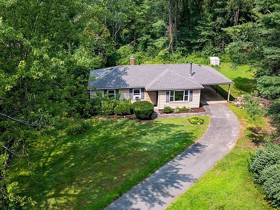 Sunny, single-level 3 bedroom /1 bath home with carport, tucked away on a little more than half-acre, lush, cul-de-sac lot. There's a tranquility here that is hard to deny. Hardwood floors in all of the main areas. Fully appliances eat-in kitchen with slider to backyard deck. Good-sized living room with picture window and wood-stove, which the owners have effectively used as their primary source of heat. Primary bedroom overlooks the backyard. Full bath with tub shower. Two additional bedrooms complete the main level. New roof in 2023! Plentiful basement storage. Newer washer and new dryer will remain. Mass Save insulation in 2022. Buderus boiler has seen very light use over the years. 1-car carport for coverage in inclement weather, too! Take the path right next to the backyard shed and you'll soon connect to the Robert Frost trail which can connect to a trail system in Wendell, and as far as New Hampshire if you're inclined! Stop by the open houses: Friday 4:30-6p, and Sat 2-3:30p.