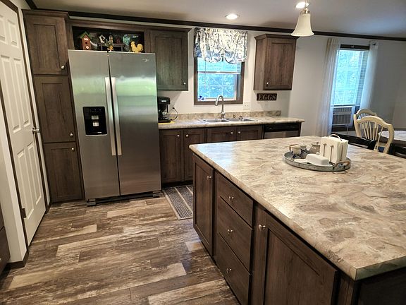 Back on the Market due to Buyers not qualifying. Brand new, double wide home adjacent to Great East Lake. Great for a year round getaway.1,493 sft of living space with spacious front to back Great room, oversized Kitchen island, large pantry, roomy dining area. Master suite has a huge walk in shower plus a walk in closet, plus 2 bedrooms & a full guest bath.