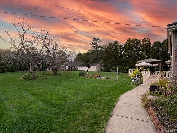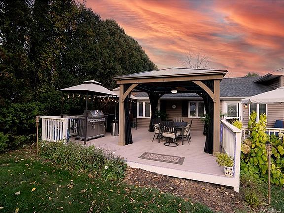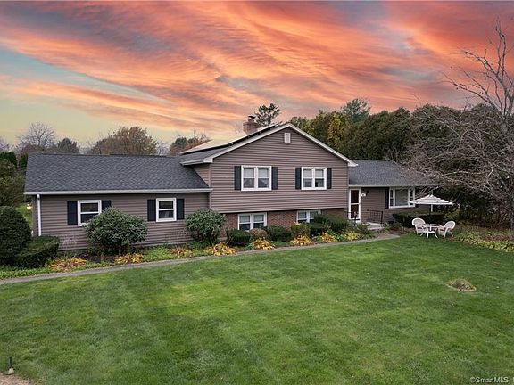 This sweet home in central Brooklyn has it all, convenient to all routes, shopping, restaurants, and across the street from the Quinebaug river with walking trails and a boat launch close by. Enjoy your privacy in the awesome backyard where you can take in wildlife and your beautiful landscaping featuring fruit trees and low maintenance perennial gardens. Ready to entertain? You are in luck, starting with the enormous deck, cedar gazebo, covered grill area, outdoor lighting, sound system, firepit, and 2 sheds with power!! Moving inside you will be SUPER impressed with the sweet bar/family room equipped with sound system, custom built ins and wood fireplace with an electric insert. Everything has been well thought out including the crawl space that has been professionally finished for extra storage and insulation. You have endless possibilities with this layout to fit your needs. The main level is spacious starting with the kitchen with room for a full table and plenty of cabinet space.The dining room opens up to the large family room with bay window and bookshelves. The upper level has 3 bedrooms and a nice sized full bathroom. The master bedroom has 2 closets AND a walk-in closet. One bedroom has custom built ins, the other is being used as an office sitting room. Also, solar panels will save money on utilities!! So many extras have went into this home to make it a unique and amazing home, come see for yourself! .Master bedroom walk in closet was once a bathroom and has plumbing that can be converted back. Many extra items can convey with home including exercise equip (hooked up in shed), dining room hutch and buffet, corner stand with stereo and speakers (inside and out) Tv on wall in living room and 1 in bedroom. Speaker system has amp for the built in sound system that works off cable and Bluetooth and also can be used for Karaoke in family room.