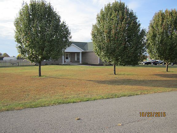Welcome to this fantastic Brick Ranch home that sits quietly on 2.09 Acres and just 8 mins from I-71. The moment you pull up you will be surprised how Private the setting is. You will be greeted with a Large Front Porch. As you enter the home you'll see how Open the home feels. Starting with a Large Great Room that showcases newer Flooring, Fireplace with Gas Logs, Built-in Book Shelf, Planning Desk Area, Fan and a Row of Windows that offers a great view of the Backyard. The Kitchen has an abundance of Cabinets and Counter Space, Tile Flooring, Tile Backsplash, Recess Lights and a Large Breakfast Bar. Off the Kitchen is an Open Dining Room with Chandelier. This Home has a split floor plan which at one end of the home has the Primary Bedroom with Carpet, Fan and Walk-in closet.