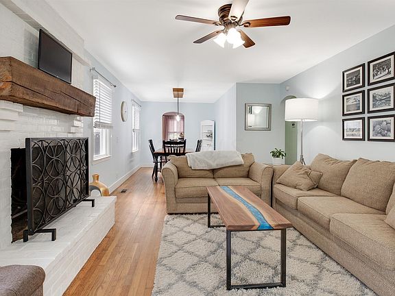 Charming stone Cape Cod in the popular Westgate neighborhood. Walk in to the cozy, yet spacious, living room with hardwood flooring and a fireplace with beautiful wood mantle as the focal point. First floor also boasts a dining room, kitchen, 2 nice-sized bedrooms and an updated full bathroom with a beautiful tiled shower. Upstairs features a third bedroom or quiet getaway, and the basement offers nearly 300 additional sq ft of finished living space with a fireplace & built-in cabinets...plus unfinished side with laundry and lots of storage. You will love the large fenced-in yard with one car garage, a chicken coop, apple tree, and raised garden beds! New AC in 2012, Furnace in 2011, water heater in 2014, windows & doors 2008.