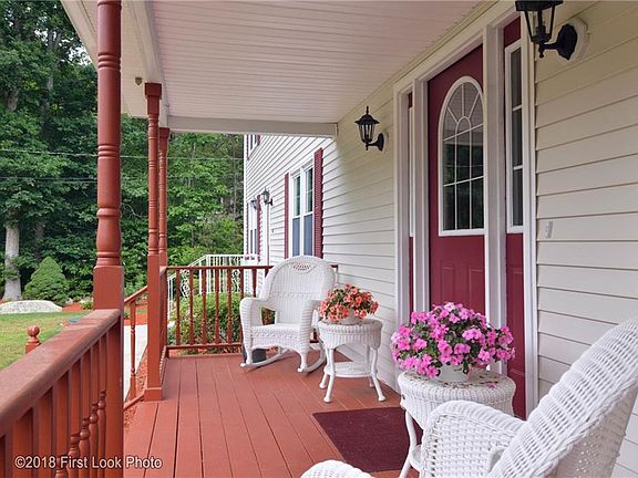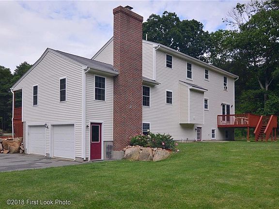 Beautiful Spacious Open Plan Colonial on quiet cul-de-sac in the country! Welcome home to a lovely farmer's porch in the front and a large deck in the back. This 3 Bed, 2 & 1/2 Bath home features an attached two car garage, large kitchen with eat in area, pantry, family room, dining room and a living room too! The unfinished walk out basement has plenty of room for a workshop. The master bedroom is it's own suite with full bath, an oversized walk-in closet and two additional large closets! Very well kept property and yard with a rock solid 36' x 24' barn with own power and water. Seriously, this barn is amazing! The back yard also has two additional sheds! Other features include a 2018 Boiler, 2015 Septic, 2 Fireplaces, plenty of life left on the roof, and an electric pet fence in place. The home conveys with a generator and has a generator panel installed. This is a preferred location in West Greenwich as it is an established neighborhood with a good amount of privacy. This is the one you have been looking for!