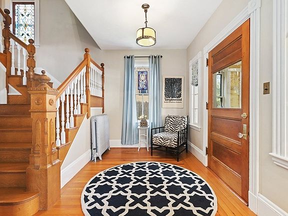 Incredible 6 bed/2 bath Victorian Colonial with flexible floor plan! Inside you'll find 3 finished living levels that have been beautifully updated, refinished hardwood flooring, French doors, decorative molding, stained glass windows, & vintage charm that carries you throughout the home. The main floor offers a spacious living room, a formal dining room with a fireplace, & the kitchen with upgraded SS appliances, a vintage kitchen sink, & lovely glass front cabinetry. Head up the grand staircase to the 2nd level which consists of 4 generously sized bedrooms, including the primary bedroom, & a full bathroom. The 3rd level which could make a great primary, au pair or in-law suite, includes 2 more bedrooms, & the 2nd full bath. Both bathrooms have clawfoot soaking tubs! Enjoy relaxing or entertaining in the private backyard on the deck or patio. Upgraded electrical, new basement stairs, blown-in insulation, exterior scraped & repainted, chimney replaced, & so much more!