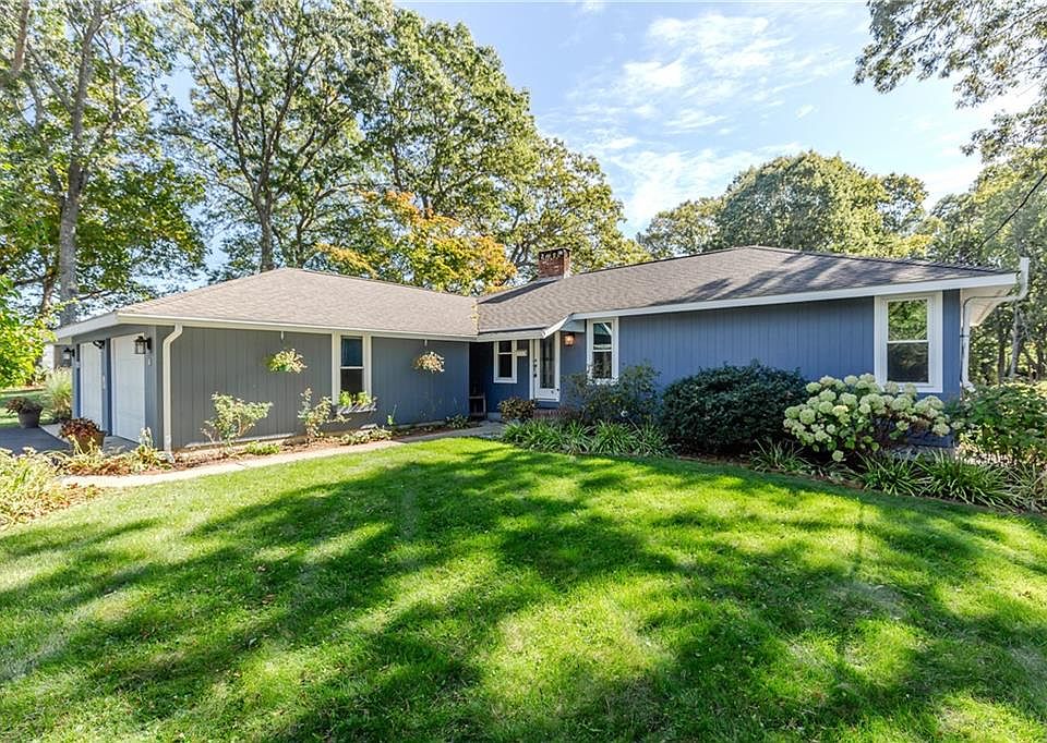 Presenting an executive-style ranch set on a rare 2-acre lot in Duck Cove, a sought-after waterfront enclave in North Kingstown. With beach rights to Lone Tree Point, a neighborhood mooring and skiff storage on the beach, the setting is private and coastal. BONUS >> Home includes architectural plans for subdividing property into one or two additional lots, perk test done on Lot One, see attached design. << Pull into the attached two-car garage with direct entry into the house and step into an open and airy one-level floorplan enhanced by vaulted ceilings, skylights and hardwoods throughout. The new kitchen features an oversized island, granite counters, and updated cabinetry, and the primary bedroom suite features a newly renovated bath. A full walkout lower level with in-law potential adds flexibility, whether for extended living, a home office, or a recreation room. A deck spans the length of the home and overlooks the mature, landscaped grounds that add privacy and curb appeal. Additional highlights include mini-split A/C, a tennis court ready to be revived, and close proximity to both Providence and Newport (less than 30 minutes). A property of this size, setting, and coastal access is a rare find and an opportunity to build a family compound or subdivide the land. The choice is yours!