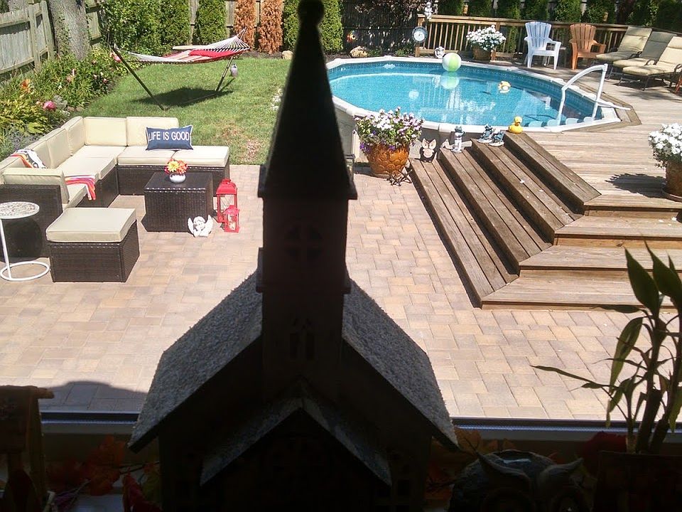 3 floors of functional and very comfortable living space. Top floor is Master Bedroom with Large His/Her closet. Main floor addition with Cathedral ceiling and Bay windows used as Dining room. Major kitchen remodel. Open Kitchen floor plan into Dining room. Bathroom remodeled. Finished basement with full bathroom. 2 decks with pool. New Cambridge Patio with sectional outdoor couch. Emerald Arborvitae trees line beautiful fenced in backyard. Peach tree and large garden area.