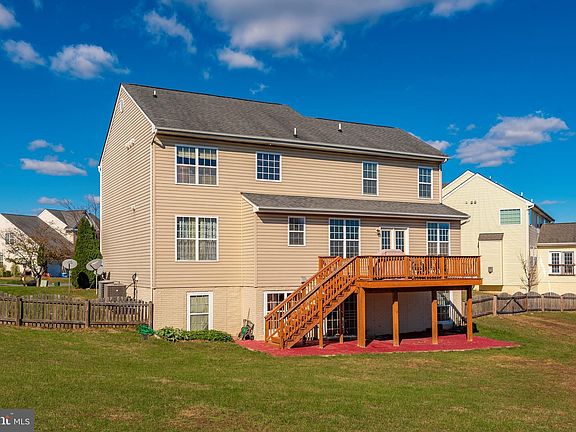 Gorgeous brick front in the lovely Hammonds Mill community. Over 5,100+ finished sq ft. Beautiful hardwood floors throughout the main level. Gourmet kitchen features 42" cherry cabinets, stainless steel appliances, upgraded with double wall oven and cook top, & custom tile back splash. Family room off the kitchen is perfect for entertaining. Master bedroom features dual walk in closets, large sitting room, and en-suite master-bath with jetted tub, separate custom tiled shower, and dual sinks. Basement is fully finished with 2nd family room, full bath, 5th bedroom, bonus room, and walkout level to concrete stamped patio. Back yard is fully fenced in and features deck off the kitchen. Freshly painted and move in ready! Easy access to shops and to I-81, US-11, WV-9.