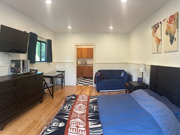 Separate studio apartment with your own kitchen and bathroom. Recently updated with new floors, new windows, paint, and lighting. Fully furnished with queen bed, dresser, table, and pull out couch. Bathroom has a shower, no bathtub. All utilities included. Short term rental. Month to month. Utilities and internet included. First and last months rent required for move in.