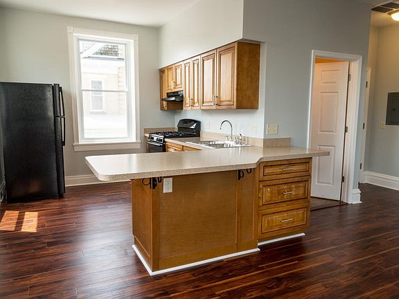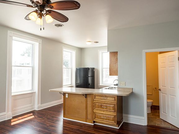This Main Street home offers a perfect blend of style, elegance and practicality. The open floor plan adds a modern flair to a vintage space accenting the decorative trim, ceiling fan and windows. The 11' ceilings and flooring embrace the presidential feeling of the space. A large living room provides plenty of space for full furniture. The large windows give way to an explosive amount of natural sunlight. A peninsula style countertop allows for maximum space in the hybrid kitchen area including a deep, double bowled sink with a goose neck faucet. The beautiful kitchen cabinets with scroll imprint provide plenty of storage. The bedroom provides plenty of closet and floor space including built-in shelfing and a ceiling fan. The bathroom offers tile flooring, chocolate brown vanity/mirror, and a roomy 36" shower. The apartment has Wi-Fi connection throughout as well as cable television. Water/Sewer/ Trash Paid by Landlord... Gas/Electric/Tech Paid by Tenant...