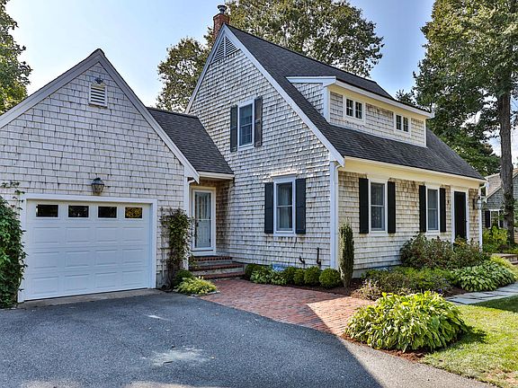 Welcome home. This beautiful 4 bedroom Cape is situated in a fabulous location under a mile to many attractions such as Downtown Falmouth, the famously popular Shining Sea Bike Path and Surf Drive Beach. This quality home features gorgeous wide pine floors throughout, 2X6 wall construction, Andersen windows and more! The expansive front to back living room includes a dining area with cathedral ceiling and a beautiful brick fireplace. The Anderson sliding door from your dining area leads out to your beautifully landscaped, level and fenced backyard and patio area. Updates include, newer roof, central air conditioning, kitchen countertops and appliances, refinished floors and more. Primary bedroom with private bath and laundry are all on the main level for convenient one floor living. The second floor has three generous sized bedrooms a full bath and above the garage storage access. Bonus space in the partially finished basement comes complete with a pool table. This is a fabulous opportunity in one of Falmouth's most sought after areas. Don't Wait!