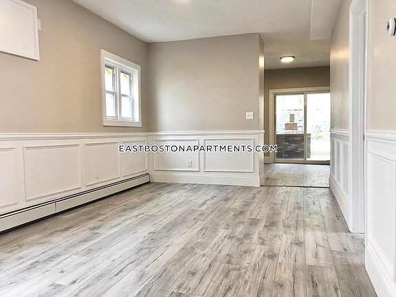 Beautiful brand new gut renovated three bedroom two bath unit in Eastie available now! Features two full living rooms, good sized bedrooms, granite counters, stainless steel appliances, in wall a/c, and laundry in the basement. There is also an enclosed backyard area as well.