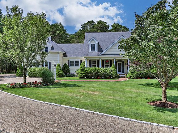 This classic Cape Cod beauty sits on nearly 2 acres in the desirable Farm Valley cul-de-sac of Seapuit. Meticulously maintained and recently updated, the home has four bedrooms all with en suite bathrooms as well as 2 half baths. Oversized windows throughout overlook the gracious farmers porch and private back yard with your own walking trail and potential for a pool. The kitchen boasts stainless steel appliances, cherry cabinets, and a large eat-in area with a vaulted ceiling providing ample natural light. The first floor primary or guest suite features privacy as well as direct access to the back deck. Furthermore, an additional primary suite is located just upstairs with beautiful views of the professionally landscaped backyard. All of this is within walking distance of Osterville Village. This home is truly turn key.