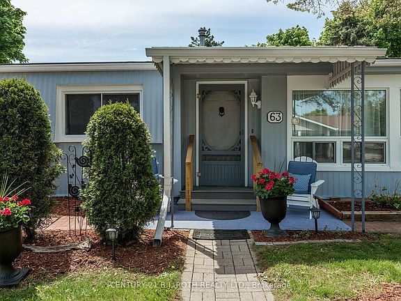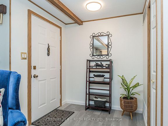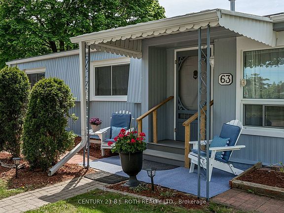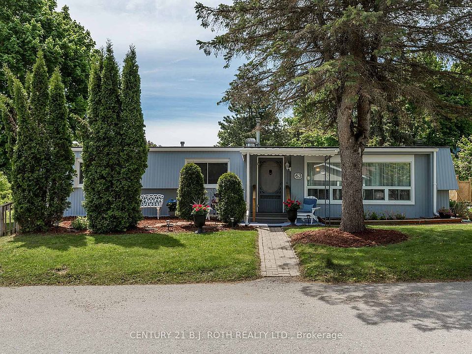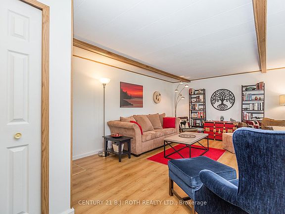 Welcome to this beautifully maintained Argus model on one of the nicest lots in the highly sought-after Sandy Cove Acres retirement community in Innisfil. Situated on a premium extra large corner lot beautifully landscaped with mature lilac trees and lush gardens - with lots of privacy overlooking forest and a private double car driveway. This turnkey 2-bedroom, 2-bathroom home combines comfort, space, and serene outdoor living. Inside, you'll find generously sized bedrooms and a thoughtfully renovated bathroom with modern finishes. The home also features newer windows throughout, a roof just 3 years old, stylish and low-maintenance flooring, and central air conditioning for year-round comfort. Freshly painted both inside and out, this property is truly move-in ready and reflects true pride of ownership. A bright and welcoming sunroom just off the dining area is ideal for morning coffee or relaxing evenings, while convenient walkouts from both the sunroom and kitchen lead to a spacious backyard retreat. Whether you're entertaining guests or enjoying peaceful solitude, this home has everything you need to enjoy your retirement in style and comfort. Possible low fee transferable lease of $624.71 and monthly property tax of $110.41 for qualified buyer means big monthly savings!