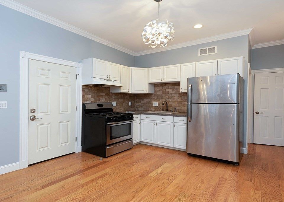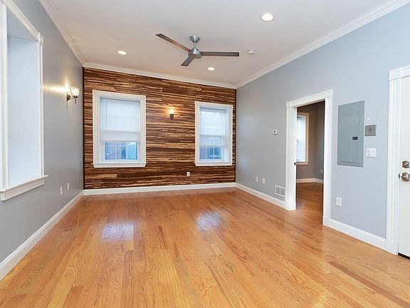 UPDATED photos attached....and on-premise laundry to be installed. JEFFRIES POINT/MOUNT CARMEL. Updated 1 bedroom apartment with meticulous attention to detail. You'll love the ultra high cathedral ceilings with crown moulding, the bright white kitchen cabinetry with glass back splash, beautiful hardwood floors throughout, nicely sized bedroom with large custom built double wide closet, beautiful oversized deep-silled windows to allow lots of natural light, and high-end/energy efficient wall-mounted Mitsubishi heat and air conditioner unit. Located just a short block away from the Airport Blue Line T station, walking distance to Maverick Square and Piers Park and reduced tolls at 40 cents for East Boston residents make this apartment a commuters' delight.