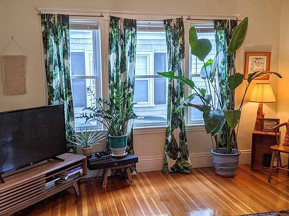 This lead compliant first floor unit in a lovely two-family home is located on a tree-lined street in desirable East Arlington. This two bedroom, one bath unit features a light filled living room which opens to the dining room with built-in hutch, a spacious updated kitchen with pantry, gas cooking and dishwasher, and an updated bath. Newer windows, original woodwork and hardwood floors throughout. Additional storage with washer and dryer are available in the basement for your convenience. Rear porch off the kitchen and off-street parking for one car. Yard maintenance and snow removal of driveway are included. Easy access to Alewife T Station, buses, Minuteman Bike Way, Arlington Center and area amenities as well as routes 2/16/60/93/95. A few blocks from Hardy Elementary School, Thorndike Field, Spy Pond and Alewife Reservation. Available April 1st. First and last month's rent required. A fee of one month's rent is to be paid by tenant. No smoking and one cat allowed.