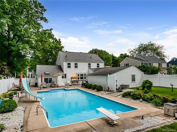 Welcome to 63 Glenbrook Rd a true West Hartford Gem. Just steps from Blue Back Square, Whole Foods and West Hartford Center this gorgeous colonial is a rare find. When you step through the front door and the gleaming hard wood floors and the freshly painted walls you'll know you are home. to your right a perfect home office with a half bath and wood paneling.Step into the large eat in kitchen and catch your first glimpse of the huge yard featuring a beautiful in ground pool with slide. With a large patio and an over sized lot you will have plenty of room to entertain family and friends. From the oversize two car garage you a move through the breezeway right into the home.This home has 200 amp service, a sprinkler system,a fully fenced and private backyard, gutter helmet gutters a huge shed and so much more. A great place to call home.