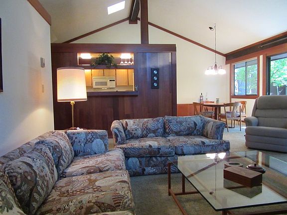 IN GRAEAGLE.... GLORIOUS and the GREAT ESCAPE... Right Here!! Nestled into the interior of the Graeagle Meadows condominium community, this charming condo is neat and clean and move-in ready. Spacious living room with native rock fireplace and redwood trim, opens to dining area with skylight. Kitchen is galley style, but very efficient and at the center of activity! Master suite with private bath and second guest bedroom with Hallway bath. Very private enclosed rear back yard, maintained by the HOA. Picture yourself with the family.... enjoying some peace and quiet and sipping on your favorite cold drink. This Unit is conveniently located close to downtown, or walk on over the Golf Course for a round of golf, breakfast or lunch. (Golf cart storage unit is included as well!)