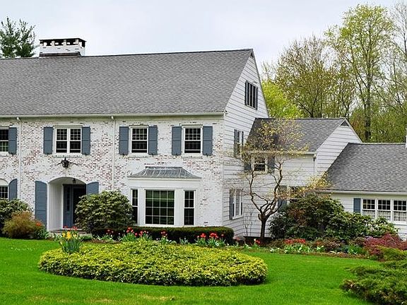 ONLY $98.73/SF This meticulously-maintained and charming colonial will feel like home the minute you see it Situated in a completely private setting in a cul-de-sac, this beautifully white-washed brick colonial, nestled in 3.5 acres, is impressively-landscaped with colorful, seasonal flowers and trees. Views of the living room, dining room and den can be seen from the grand foyer, which boasts a gracious staircase, leading up to the bedrooms. On the first floor the den is cozy and serves as a space for entertaining and playing a game of pool, featuring featureing a wet bar/fireplace/rustic wood beams on the ceiling. The dining room is expansive with gleaming hardwood floors & views to the yard. Built-in shelving & cabinets are perfect for storage or for displaying your china/glassware. The kitchen island is a baker's/hostess' dream, featuring both a cutting board and marble top The commercial grade appliances add to the lovely French-inspired décor. The eat-in kitchen, with shelving and built-in cabinet space, has sliders which lead out to a private, covered porch, perfect for cooking out and enjoying spectacular sunsets The sun-filled living room has a coal fireplace, abundant windows and a door leading out to a fantastic, circular, blue stone patio. The spacious master bedroom has a gas fireplace, sitting area and a large walk-in closet with attached en suite, which is limited only by your imagination in creating a luxurious spa-like retreat PLUS with a home warranty