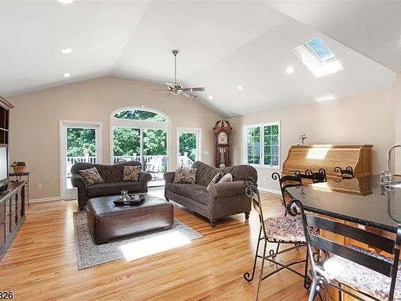 Situated in a lovely neighborhood and close to the downtown w great restaurants and shopping is the 5 bedroom, 4 full bath home w a FABULOUS GREAT ROOM! The entire first floor has an open concept layout That includes a spacious dining room, updated kitchen featuring custom cabinetry, SS appliances, pantry and center granite island that overlooks the great room: An expansive room featuring cathedral ceilings w skylights, a wall of windows and Pella slider leading to the deck and wonderful views of the park like back yard. Beautiful HW floors throughout the home have been recently refinished. A 3 season porch is the perfect room for entertaining both in and out w 2 nearby patios plus pool to cool you off during those hot Summer months. An oversized master suite is 500 sq.ft w cathedral ceilings and and updated bath.