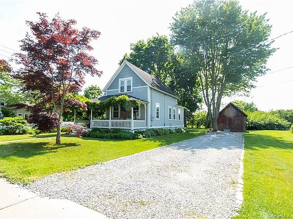 This charming, picturesque home is in a desirable Clinton location near town docks, marina, and restaurants. This home will remind you of simpler times. The wrap around porch offers a swing to sit in while overlooking the pedestrian walkway and neighborhood happenings. The sunny side-yard provides the perfect location for beautiful vegetable and flower gardens. For a retreat, you can wander to the large private backyard equipped with a hammock and outdoor eating area. The well-maintained barn that accompanies the house is deceiving in size and could store a car, boat, or be a terrific workshop with storage. When entering through the front door, there is an attractive vestibule with coat closet and built-in bench that further leads to the dining room at the center of the home. Off of the dining area are the kitchen to one side and living room on the other, creating a nice flow. The main floor also has an office/guest room, a half bath, a small back porch, and laundry facilities. On the second level is the primary bedroom with a walk-in closet and full bath. The owner is a terrific decorator willing to negotiate most of the home's furnishings.