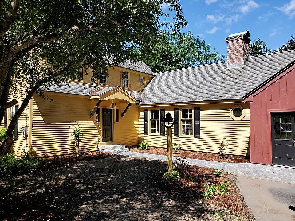Private 2.5 +/- acre corner lot. 4 Bedroom 3 ½ Bath. This country Farmhouse style home is truly unique. Set back and a beautiful wooded perimeter. Attached oversized 2 car garage elegantly cited in a picture-perfect New England setting. This unique custom cape has character that will take your breath away. The home opens up to wide pine floors, exposed wood beamed ceilings throughout dining room, kitchen and into a '15x22’ Cathedral ceiling living room. First floor laundry room and office/bonus room. The large windows provide a sun-filled space to capture the impeccable craftsmanship of woodwork. The Kitchen is fully applianced with SS dual fuel range, DW, refrigerator. large island with a second sink, leathered granite countertops and a farmhouse sink that overlooks herb garden. 1st floor master Bd with a beautiful master bath, spa rain shower and dual vanity. 2nd floor junior master with a 3/4 bath, 2 spacious bedrooms with and a warm full bath. The house is equipped with an on-demand generator, forced hot water by oil, a second system- Mitsubishi with heat pump and cooling system. Private well and septic. Mature landscape with garden shed. Highly rated Bedford School system, easy access to highways and stores.