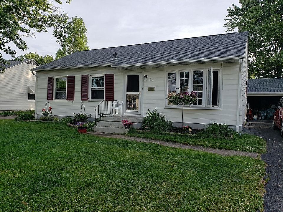 63 Harvington in move in ready! Tear off architectural roof. 200 amp electrical service. Mostly updated windows. Energy efficient furnace. Updated kitchen and bath. New floors in the bathroom in the kitchen. Hardwood floors under the rugs. Good-sized bedrooms and closets. The basement is completely finished for even more living space. Huge two car garage with a new automatic door opener. The yard is enormous and fully fenced. The entire yard also has drain tile. Call today!
