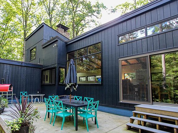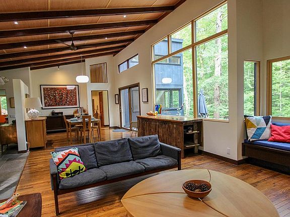 Bold Style. Stunning 3 BR, 2.5 Bath Ellis Hollow Contemporary has been transformed! Dramatic house makeover. 2.05 Acres. Open Living. ALL NEW Low-e Windows. Great Room! One-of-a-kind Fossil Stone Fireplace. Vaulted Ceiling. All New Foster Custom Kitchen with beechnut cabinets, stainless appliances, and subway tile. New Patio and Courtyard. Luxury Main Floor Master Suite -- behold the most beautiful Master Bath ever! En suite bedrooms. Family Room. NEW Navien Boiler, Radiant Heat and On Demand Hot Water. Next to 200-Acre Ellis Hollow Nature Preserve.7 Minutes to Cornell and East Hill Plaza.