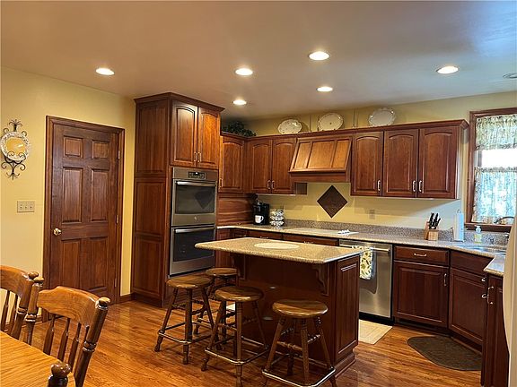 This home has a beautifully update kitchen with Cherrywood Cabinetry, Hardwood floors newer Dishwasher, MO, and Oven, Custom Office, Oversized, Living/Family room with Gas Fireplace featuring Crown Dental Molding throughout first floor, beautiful Entry, Wooden Staircase, front and rear porched, detached 2 car garage. older finished 3 floor for storage, corner lot in a great area of town.