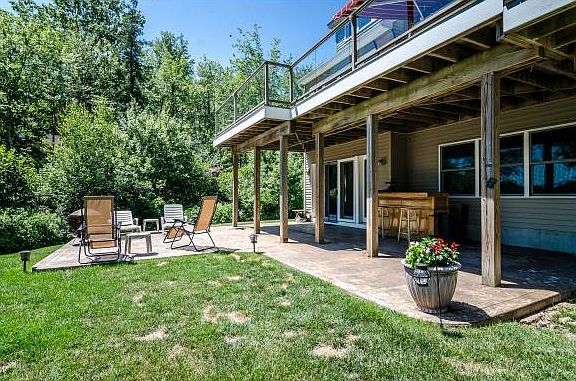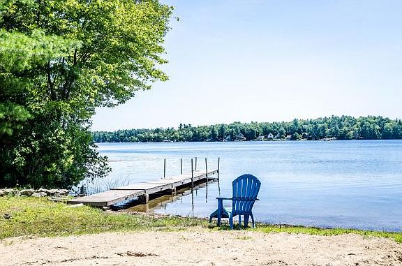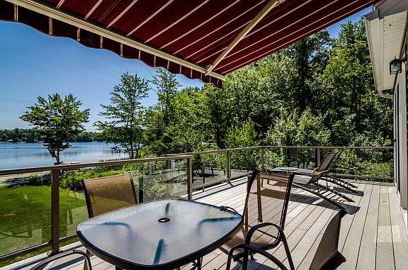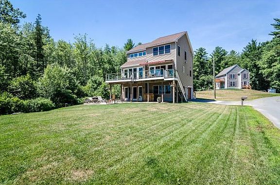 Fantastic waterview home with all the benefits of waterfront and half the taxes... This beautiful Contemporary Colonial has a lot to offer. 100% unobstructed views and access to the pond. Home has dock and beach just in front of the flat front lawn. 2008 built with 2+ beds, 2 full baths and a 3/4 bath in the walkout lower level. Beautiful deck with glass rails, summer kitchen in the lower level with patio and bath. Walls of windows facing the pond and soaring high ceilings in the main level. Central air and heat as well as a pellet stove. Seller heats for less than $1000 per year. Truly looks and acts like a true waterfront home but the right of way cuts the taxes way down. A smart choice for lakefront shoppers. Home also features, large decks its rollout awning, flat lot, impeccable views at sunrise, 1 car garage, walkout waterside patio and more...