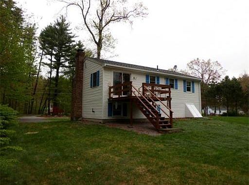 Split level home located on country road, that runs past protected lands that feature beautiful gardens.Quick access to major routes and commuter rail.Open concept living and dining room with hardwood floors and brick fireplace.Kitchen with oak cabinets,tile floor, with all appliances to convey.Lower level features a large fully finished room which can be used a number of ways,loads of storage and a full laundry. Huge landscaped yard with a shed and nice tree lined border.