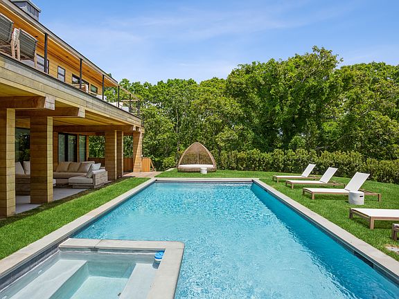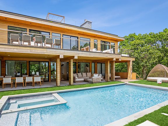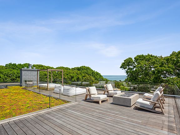 Newly completed and professionally designed, this Montauk modern is the epitome of Hamptons luxury. Inspired by Frank Lloyd Wright's "Fallingwater", witness unmatched elegance at every turn. Resting just moments to the ocean shore, this six bedroom, five full, two and a half bath home has it all. Take full advantage of the summer with deeded Hither Hills beach rights and private parking for residents and soak in the sun on the sprawling white sandy beaches. This property values the nature of Montauk and truly integrates indoor and outdoor living with five finished outdoor terraces all overlooking the Atlantic Ocean. Featuring a well thought upside-down layout, ocean views are maximized on all levels with floor to ceiling glass facing south and onto the water. On the first level of the home, there are four en-suite bedrooms, a living area with a gas fireplace, wet bar, laundry room, and an additional half bathroom. On the upper level you will find the luxe primary suite which includes a walk-in closet, gas fireplace and stunning bathroom. Also showcased on this level is a chef's dream; a state-of-the-art kitchen which has a large center island with seating and opens into a great room for dining and living space. Access the expansive deck from the upper level and take in awe-inspiring views of the Atlantic Ocean while dining and lounging. Take your Montauk experience to new heights from the one of a kind rooftop deck and enjoy your own private sunrise, sunset or even whale watching. The sun-filled backyard includes and outdoor patio with built in kitchen, cabana, heated gunite saltwater pool, spa and outdoor shower. The fully finished lower level offers a custom entertainment area with full bar, daybeds, projection screen, as well as a full bedroom and bathroom. No stone is left unturned as the home is complete with a gym, two car garage, office and even a dumbwaiter which enables easy unloading of groceries and package delivery to each floor. Available for a limited time this summer 2022, come witness luxury at its finest!