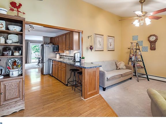 Beautifully updated and expanded throughout, this is not your typical Levittown home! Enter through the covered front porch to the bright Living Room with vaulted ceiling and ceiling fan. Galley style Kitchen features newer stainless steel appliances and ample counter and cabinet space. Large Dining Room off of the kitchen with sliding glass doors leading to the back yard. Expanded and remodeled full bathroom on main floor. Master Bedroom addition with large closet is a must see! Family Room with fireplace and bar area give this home a nice open layout for entertaining. Upstairs two nice sized bedrooms both with ceiling fans and half bath. Serene backyard with flagstone patio and hot tub. 1 Car Garage with inside access and access to separate laundry room. Double Driveway. Replaced sidewalks, curbs and apron. Sewer line has been replaced and underground oil tank has been removed. Nothing left to do here but Move-In and Enjoy!