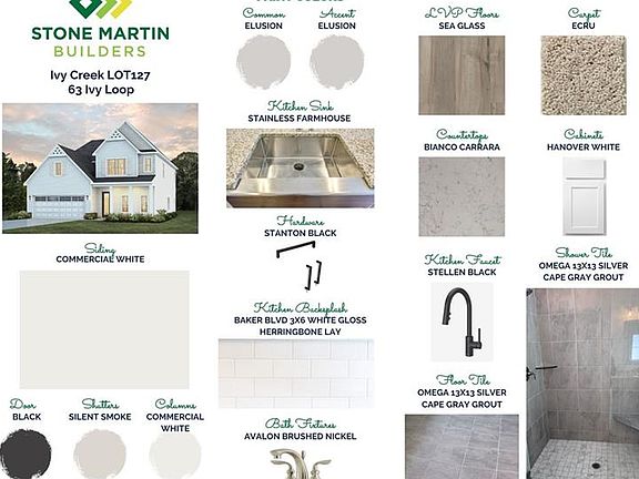 Style in simplicity and functionality, the “Sterling” plan is a 5 bedroom 3 bath house that provides ample space for family living. Entering the elegant foyer there is an adjoining formal dining room. The foyer leads into the expansive kitchen featuring granite countertops and a large island perfect for cooking and entertaining. Off of the kitchen is the convenient laundry room capable of housing the washer, dryer, and other cleaning or storage needs. Flowing from the kitchen into the spacious great room with an airy feel, enjoy the attractive fireplace. Finishing the main floor is a private master suite featuring a spa like master bathroom with a double vanity, separate garden tub and shower and massive walk in closet. The four spacious bedrooms on the second floor complete this substantial floorplan all with walk in closets catering to all the essentials of a growing family. Lot 127 in Ivy Creek